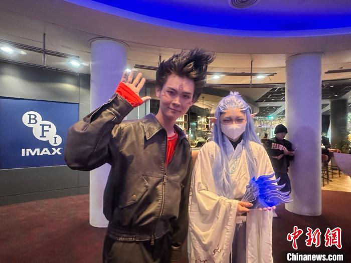 当地时间3月14日,英国伦敦,装扮成哪吒和敖丙模样的观众。 中新社记者 欧阳开宇 摄