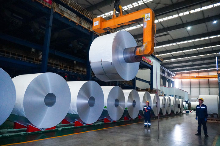 走进南山铝业高端轻量化铝板带项目现场,入目一派繁忙景象。生产车间里,板带堆放整齐,即将供应给空客、波音等公司。南山铝业板带事业部总工程师张华说:“项目2023年开工,目前已部分批量生产。”