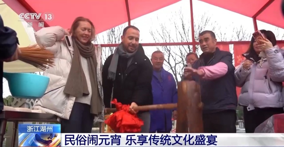 除了演出,特色产品展销区同样热闹。米酒、汤包等美食备受欢迎,大家还可以参与打年糕、猜灯谜等活动,不少外国游客也来感受中国传统佳节的文化韵味。