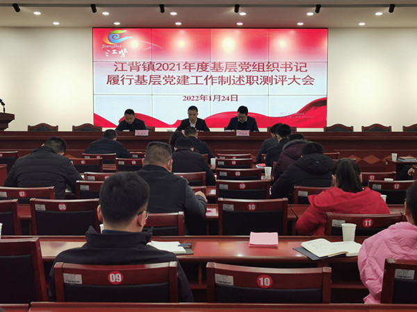 江背镇召开2021年度基层党组织书记履行基层党建工作责任制述职评议大会。江背镇供图