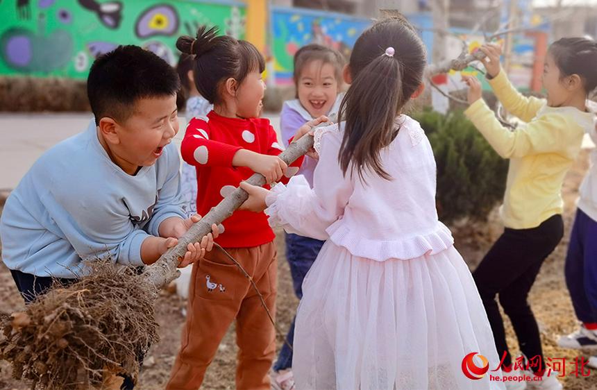 河北省东光县小朋友们开心的种下小树苗。 陈英华摄