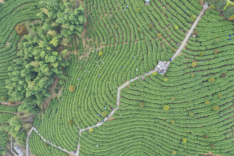 放眼望去,宣城市旌德县白地镇一弯弯一排排的茶树错落有致。江建兴摄