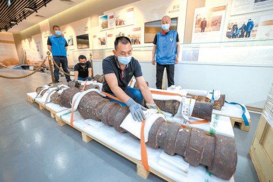 有了“腿”,神炮便“来去自如”了许多。之后,将用液压拖车机械装车,与馆内所有文物统一运输。