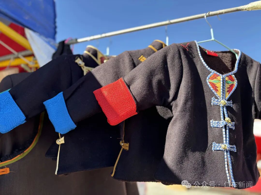 “给孩子买件新藏装,给老人选对新藏靴。”拉姆带着一家人穿梭在服装区。她为7岁的女儿选中了一件绣花精致的紫色藏装,小姑娘迫不及待地在摊位前试穿起来,笑容灿烂如格桑花。“新年穿新衣,是从小到大的记忆,不能丢。”