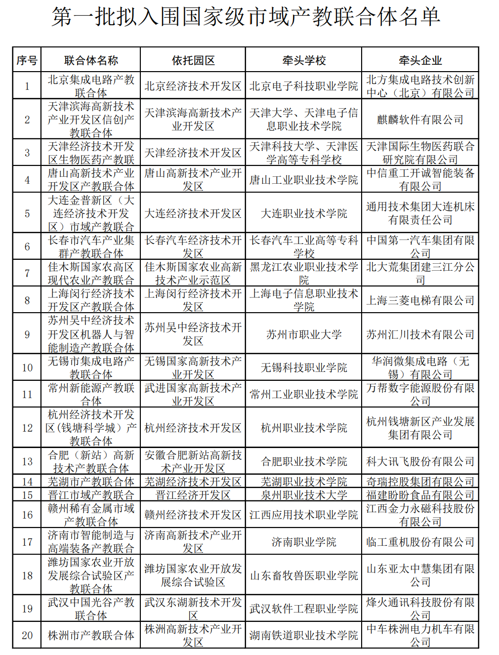 第一批拟入围国家级市域产教联合体名单(教育部官方网站截图,央广网发)