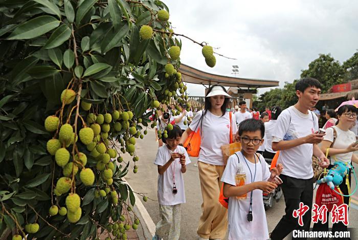 中新网茂名5月17日电 (梁盛 池榕)广东茂名市茂南区2025亮“荔”缤纷行·荔枝文化嘉年华活动,17日在茂南区羊角镇禄段千年古荔园开启。约两公里的路线上,古荔树静待游客盖章打卡;浪漫甜蜜的荔枝花束、非遗美食牵动参与者的脚步;音乐声中泼水狂欢,大家尽情释放活力;缤纷涂鸦墙上留下欢乐手印,荔叶上雕刻时光印记……