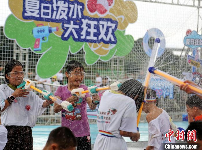 参加活动的小朋友在泼水狂欢。岑稳 摄