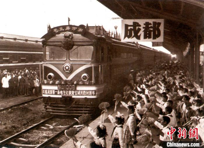 1975年7月1日宝成铁路电气化工程全线建成通车典礼。西安铁路局供图