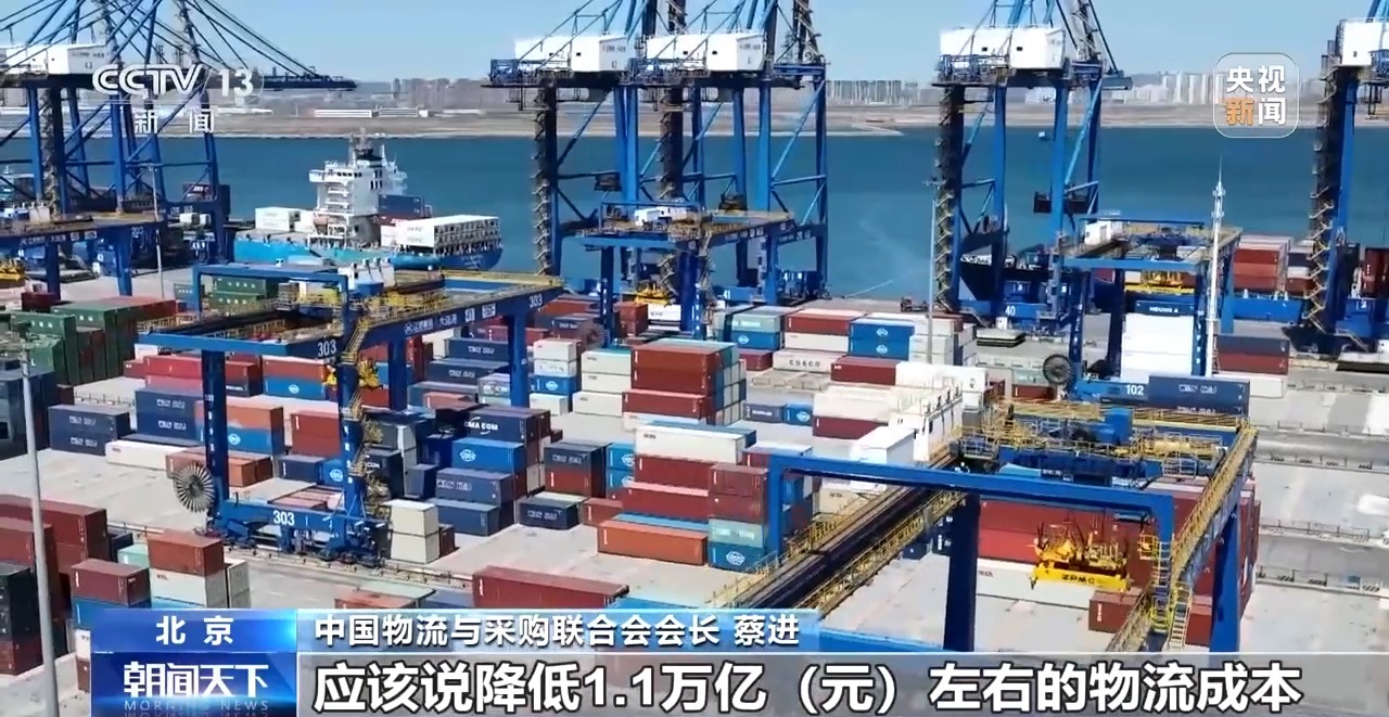 中国物流与采购联合会会长 蔡进:在“十四五”期间物流成本有明显的回落,政府层面的政策推动效应是非常明显的,一些新技术的应用提高了物流运行的效率,降低了物流成本。据我们初步测算,这五年来逐年累计下来,应该说降低1.1万亿左右的物流成本。