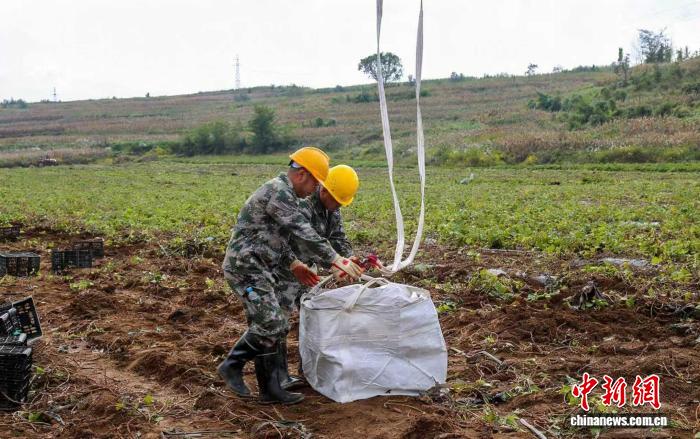另外一国企的“智能助农先锋队”则利用无人机,开展短途运输作业,帮助村民快速抢收红薯。工作人员杨波介绍,和传统人工搬运比起来,无人机完全不受田间积水的阻碍。无人机每次能承载150斤,1个小时就能运送近3000斤,作业效率远超人工搬运。