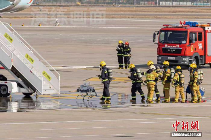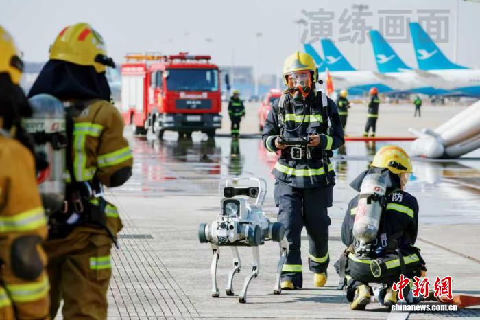 值得关注的是,演练中首次应用了两类专业应急救援装备。四足应急救援机器狗化身“钢铁战士”,搭载生命探测仪与多气体传感器,兼具5G远程操控与自组网通讯功能,完成浓烟机舱内被困人员精准定位、高危环境无人化侦查任务,并实现救援现场数据的实时回传与指挥中心的远程精准调度。同时,型号为AW139救援直升机紧急起飞,将“重伤员”跨区域快速转运至异地医院,实现了空中生命支持的无缝衔接,有效提升了应急救援的科技化、专业化与高效化水平。