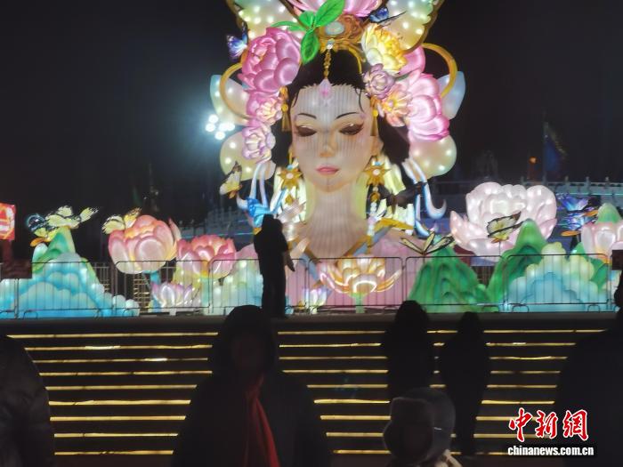 图为民众在鄂尔多斯市伊金霍洛旗观看“自贡灯会”。中新网记者李爱平摄