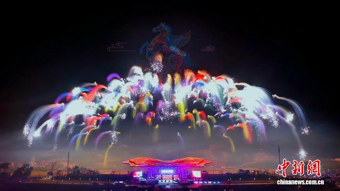 随着无人机编队幻化出《马踏祥云》的壮观景象,一匹流光溢彩的“天马”仿佛自神话中奔腾而出。邓霞林 摄
