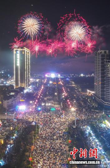 正月初五当晚,焰火晚会直接吸引外地游客超20万人次。彭红霞 摄