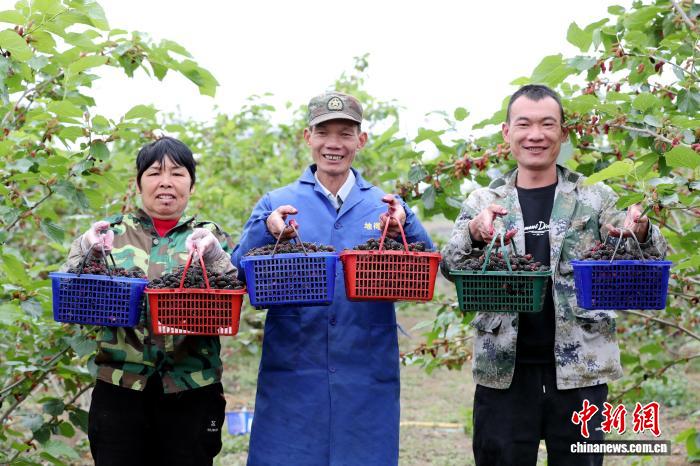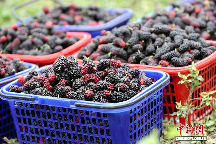 “现在我们每天都采摘三四百斤桑葚到市场上售卖。”周耀礼说,今年的挂果量明显多于去年,果型饱满、品质优良,订单供不应求。忙时他还会聘请周边村民帮忙采摘,有效带动当地村民增收。