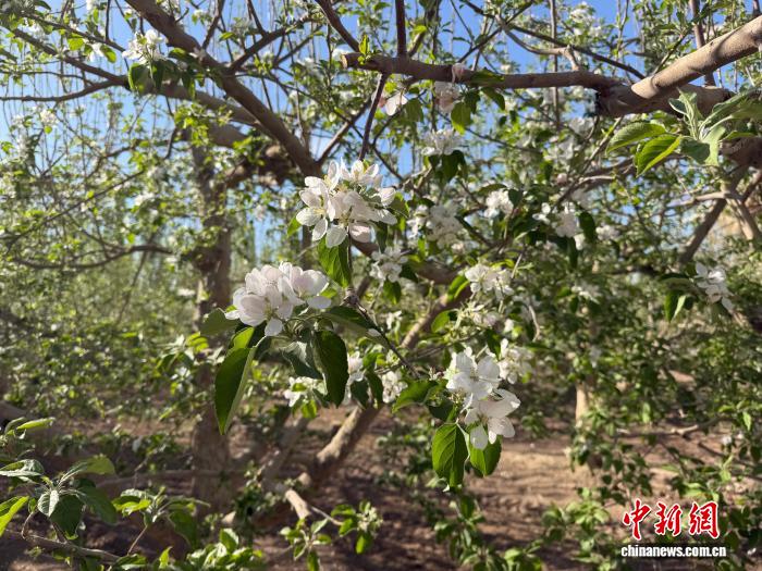 阿克苏丰庆园农民专业合作社示范园内,苹果花争相开放。张家伟 摄
