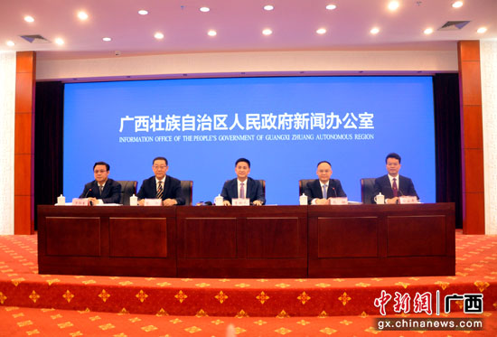 7月8日,庆祝中华人民共和国成立70周年贵港市经济社会发展情况新闻发布会在南宁举行。中新社记者黄艳梅 摄