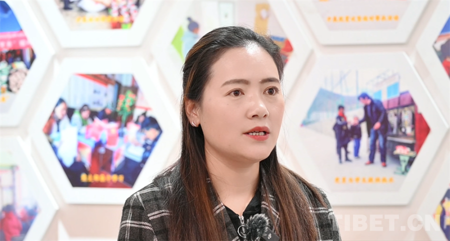 图为昌都市洛隆县教育局局长普布卓玛接受采访