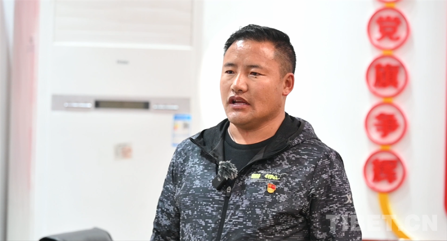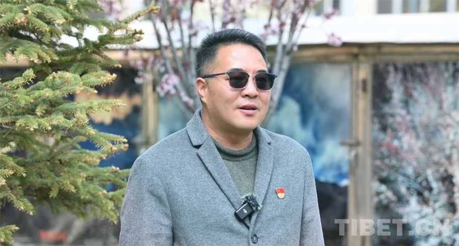 图为昌都市洛隆县第二小学教师斯郎曲扎接受采访