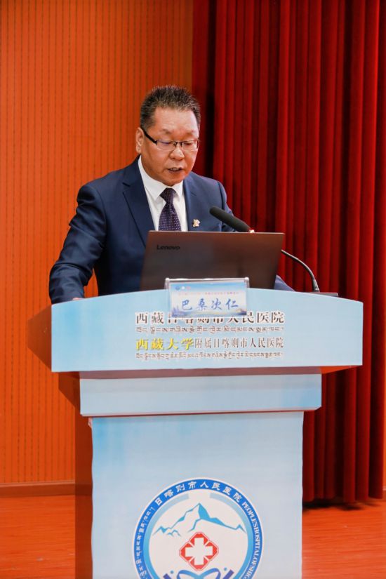 日喀则市人民医院院长巴桑次仁在论坛上发言