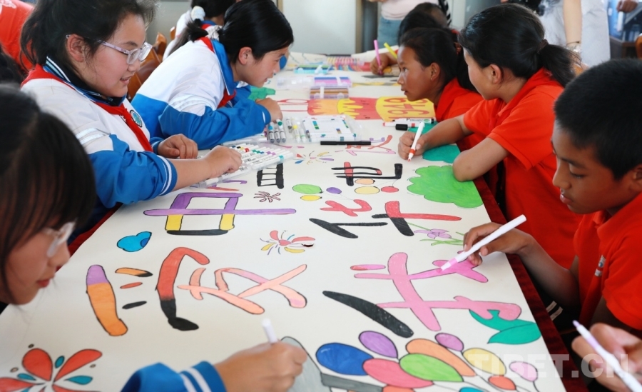 2025年9月25日,西藏自治区阿里噶尔县孔繁森小学的师生来到位于孔繁森家乡、山东省聊城市的堂邑镇中心小学开展联谊活动,共同创作迎国庆主题画卷。摄影:刘莉