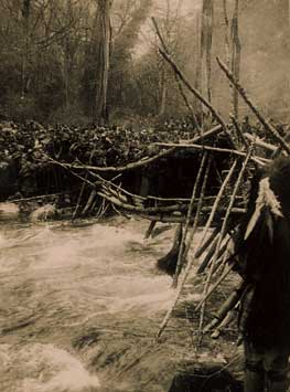 我们各人身背重物又缺医药,又无担架,眼睁睁看其死去无法救助。经溜壁时,野人居高临下用大石滚下,将过悬崖之人打落万丈深渊。西藏军队已向前走了,而且是单行线,后面发生的事件根本不能救护,故死者甚多。冒死前进,如此日复一日有进无退,所带食物因气候潮湿已渐变坏,但仍然须要充饿,故多人生病或有伤足者或有体肿者,队伍更不能前进相接了。