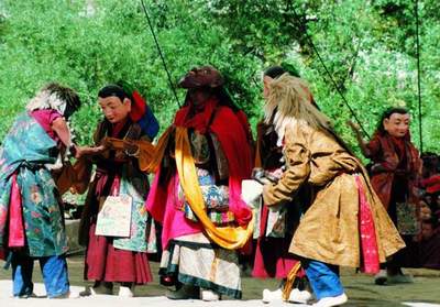 八比丘舞,八勇士舞;他们都是主宰藏人生死的孜玛日大神威武的仪仗队成员。