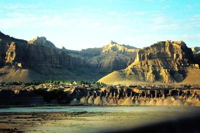 托林寺远眺。托林寺始建于公元996年,直至公元1082年才完工。经二十几代古格国王的努力,建成规模远比当今所看到的庞大、气派的托林寺。周爱明摄 |