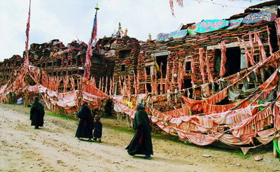 天下无双的松格嘛呢城局部及转嘛呢的当地牧民。 |