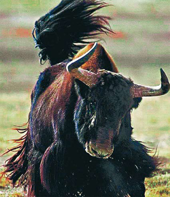 发起攻击的野牦牛。肖长伟/摄