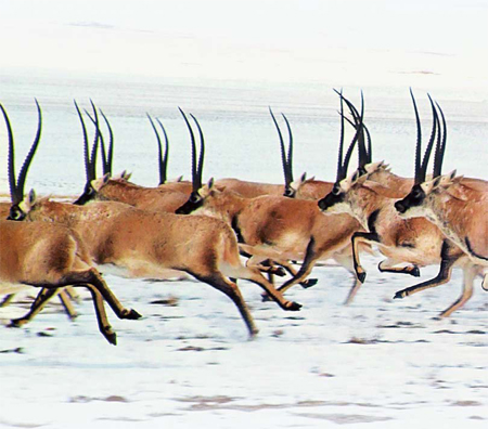 奔跑的藏羚羊。肖长伟/摄
