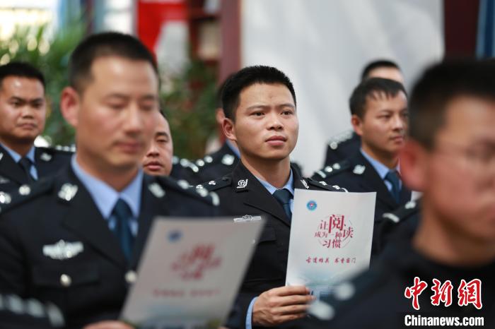 图为吉隆出入境边防检查站参与“古道雄关 书香国门”主题读书分享会的移民管理警察正在认真聆听。肖富贵 摄
