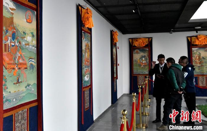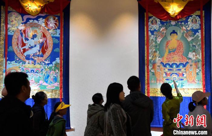 图为观众欣赏唐卡。李林 摄
