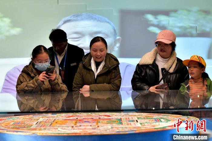 图为观众正在欣赏展览中的大威德金刚坛城。李林 摄