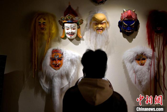 图为观众欣赏藏戏面具。李林 摄