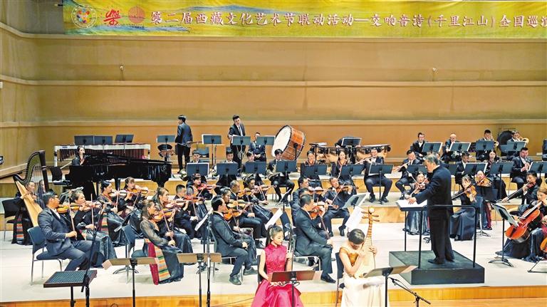 25日晚,第二届西藏文化艺术节联动活动——交响音诗《千里江山》在西藏大剧院小剧场奏响。