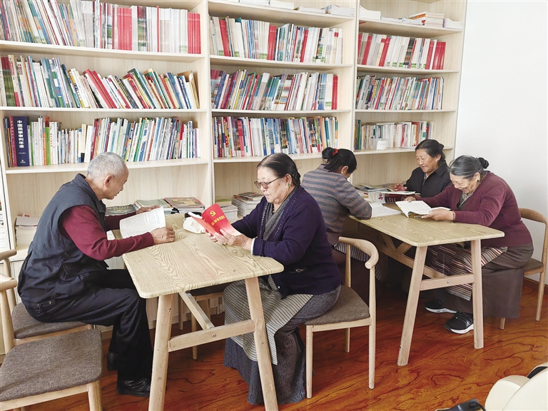老人在日间照料中心阅览室看书。 记者 贡曲罗杰 摄