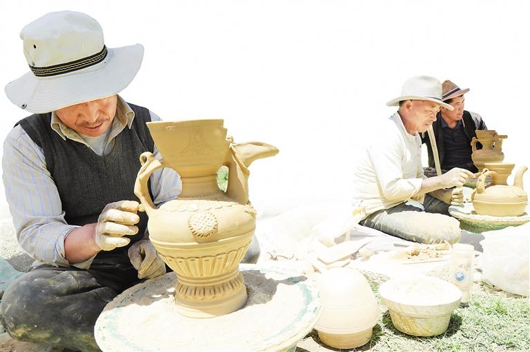 图为塔巴陶瓷技艺传承人在制作陶器。 通讯员 洛克 记者 黄志武 摄