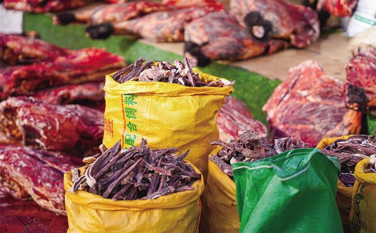 近年来,随着到西藏的游客逐年增多,风干牦牛肉不再是只属于高原的美食,逐渐成为游客们旅行归来赠送亲友的首选特产。一根根小小的风干牦牛肉条,承载着藏族人民的勤劳与智慧,走向了全国各地,开启了属于它的无限可能……