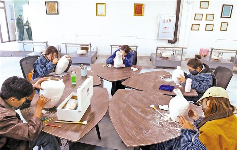 图为该公司员工在创作陶瓷作品。记者 旦增兰泽 摄