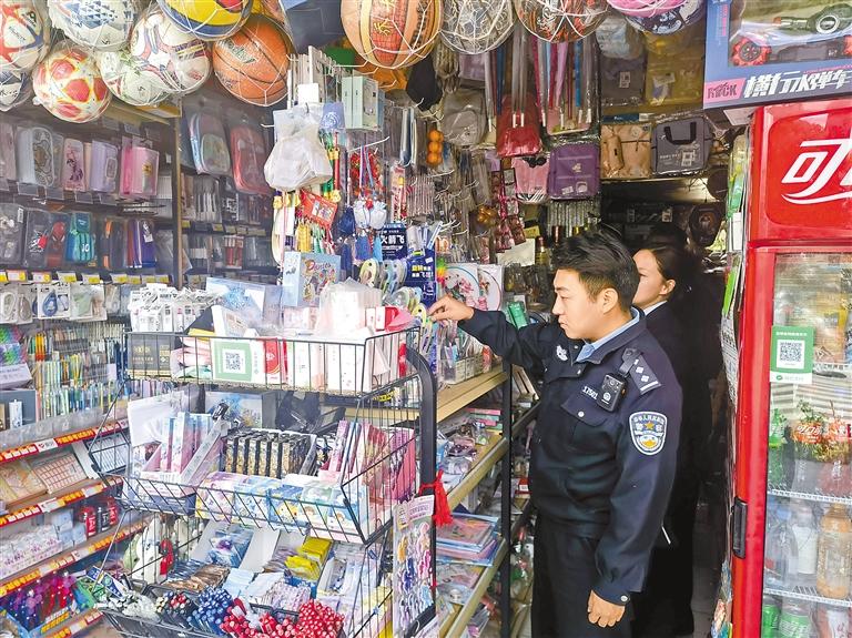 山南检察司法警察协助检察官进行整顿校园周边环境执法。