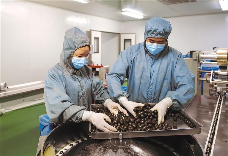 图为昌都光宇利民药业有限责任公司的工作人员在检查成品药质量。记者 丹增群培 摄
