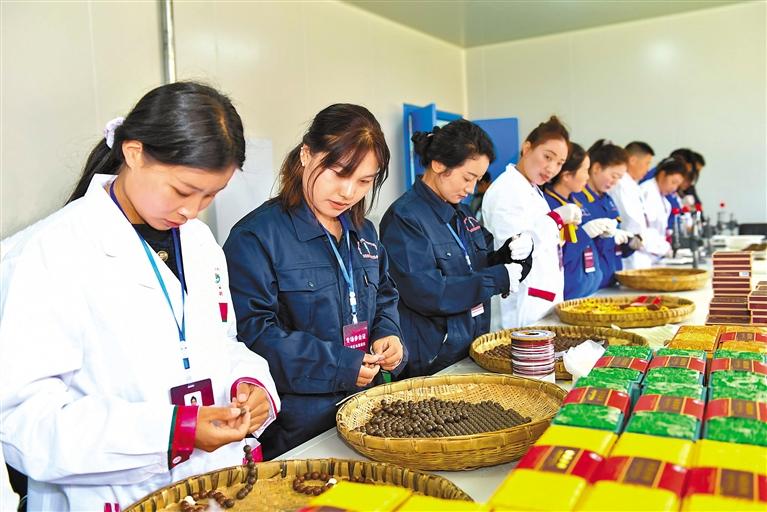 图为西藏仙露藏药有限公司的员工在分拣包装藏药药品。记者 丹增群培 摄