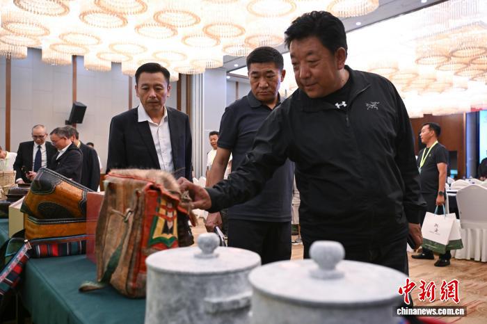 图为参会人员参观特色产品展示区。 贡嘎来松 摄