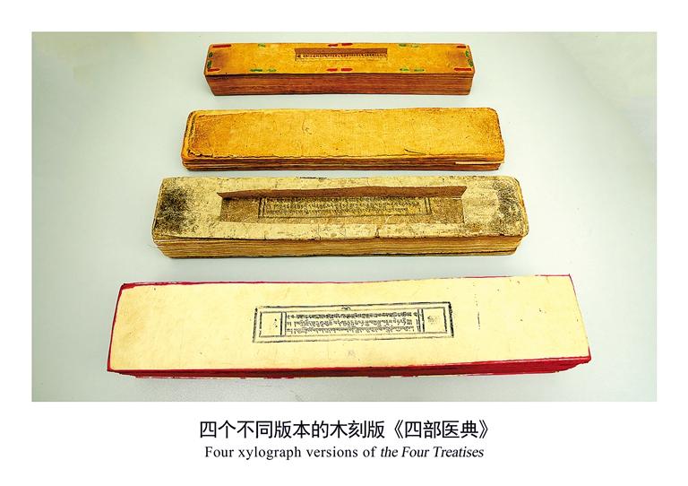 四个不同版本的木刻版《四部医典》。自治区藏医院文献研究所提供