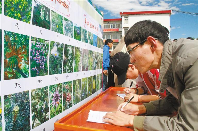 西藏藏医药大学学生参加藏医药草本植物认药知识竞赛。西藏藏医药大学提供