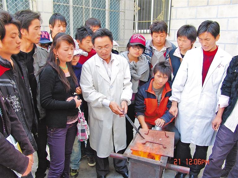 西藏藏医药大学开展藏药金属炮制和锻灰工艺现场教学。西藏藏医药大学提供