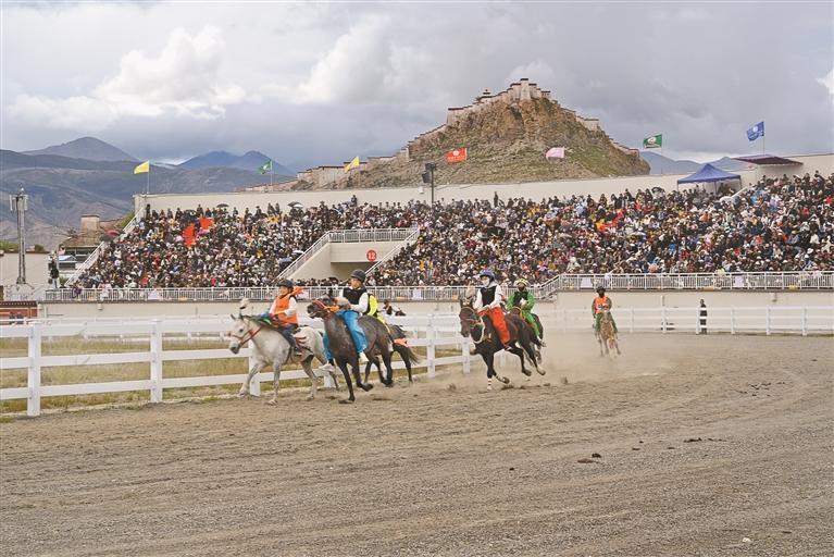 开幕式上,100位骑手策马奔腾,绕场致意。随后,击鼓迎宾、红色鼓阵、车仁望果、千年名城、英雄江孜、青稞之乡等10个方队和来自各乡镇的赛马队依次入场,全方位、多角度展示了江孜县特色产业兴旺、基础设施提升、民生持续改善的美好图景,展现了新时代英雄城儿女坚韧不拔、昂扬向上的精神风貌,深情表达了江孜人民对党的无限感恩、对祖国的无限热爱、对西藏繁荣发展的美好祝愿。