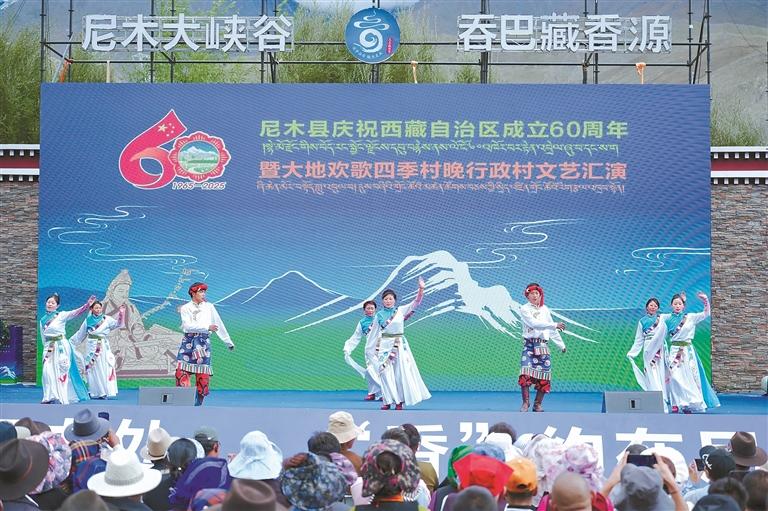藏香文化旅游节上的大地欢歌四季村晚行政村文艺汇演。记者 鹿丽娟 摄