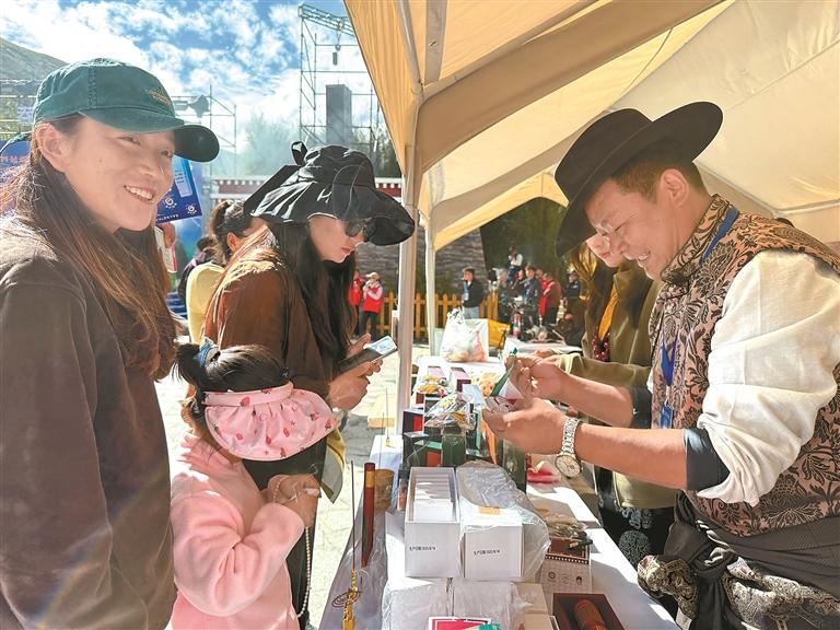 “今天我们带来了6种藏香文创产品,分别有安神、提神、清洁空气等系列,这些年我们除了在线下销售,还要感谢尼木县委、县政府积极与线上各大平台接洽,让我们的藏香通过线上销售,走出了尼木,让北京、南京、天津等城市的客户通过线上购买。所有藏香都是由县委、县政府组织的易地搬迁户制作,这让不少群众不仅能就近就业,还能照顾家里。特别感谢党和政府对藏香保护和发展所做的各项工作。”县级非物质文化遗产传承人洛桑旺堆在活动现场说。
